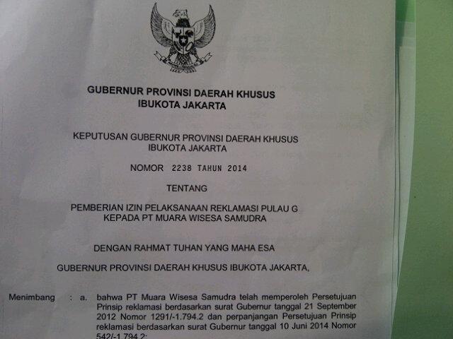 Berikut adalah bukti tanda tangan Ahok pada SK izin Reklamasi Pulau G di Utara Jakarta.